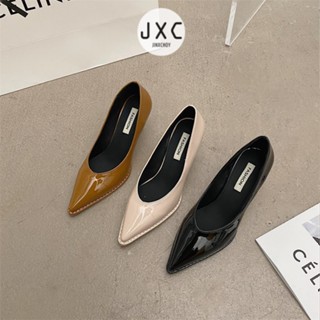 JINxCHOY Giày cao gót JINXCHOY mũi nhọn màu trơn thiết kế mới đơn giản thời trang