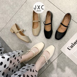 Giày búp bê JINXCHOY da PU gót bằng mũi vuông màu trơn xinh xắn dành cho nữ