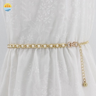 Thắt Lưng Dây Xích Kim Loại Mỏng Đính Ngọc Trai Thời Trang Thanh Lịch Cho Nữ JP2VNWL