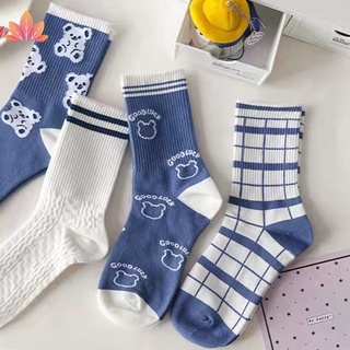 Vớ cotton dài màu xanh dương kẻ sọc đơn giản thấm hút mồ hôi phong cách Nhật Bản thời trang mùa thu cho nữ JP5