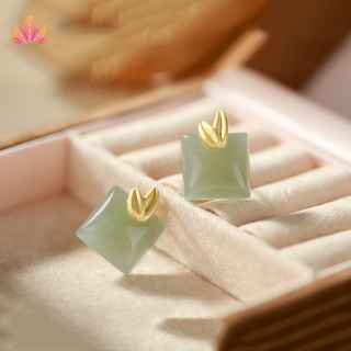 Khuyên Tai Mạ Vàng Hình Lá Tre Đính Đá Ngọc Bích JP5