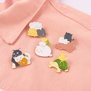 Ghim Cài Áo Tráng Men Hình Mèo/Cá Mập Dễ Thương Vui Nhộn Làm Quà Tặng Cho Bạn Gái/Túi Xách