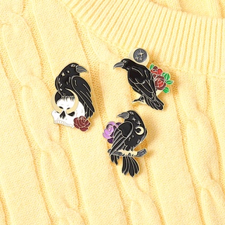 Ghim Cài Áo Hình Chim Quạ Đầu Lâu Mặt Trăng Hoa Phong Cách Gothic Punk Thích Hợp Làm Quà Tặng Cho Bạn Bè
