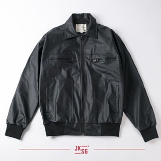 Áo khoác da nam cao cấp JKSG, jacket da PU dày dặn, áo khoác da cổ bẻ, thiết kế đường chỉ nổi form rộng thời trang
