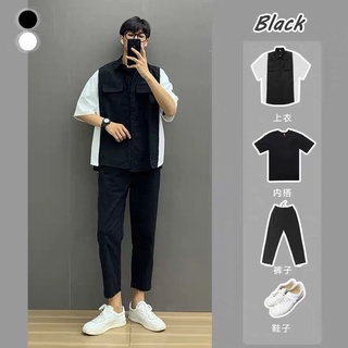 Áo thun/ Áo sơ mi tay ngắn màu sắc tương phản/ Quần jean dài/ Vớ phong cách Nhật Bản thời trang cho nam