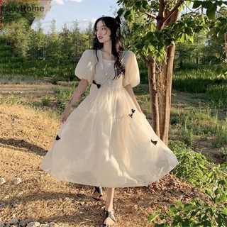Đầm Midi Dáng Chữ A Cổ Tròn Tay Phồng Đính Nơ Thời Trang Mùa Hè Cho Bạn Gái
