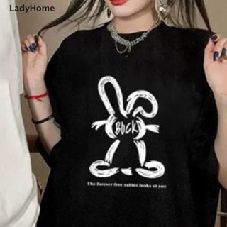 Áo Thun Tay Ngắn Cổ Tròn Dáng Rộng In Hình Thỏ Thời Trang Mùa Hè Xinh Xắn Cho Nữ