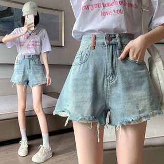 Quần Short Denim Dáng Chữ A Giả Hai Lớp Phối Rách Cá Tính Thời Trang