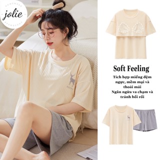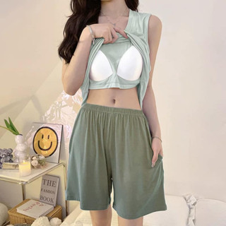 Bộ Mặc Nhà Mùa Hè Áo Cộc Quần Cộc Có Đệm Ngực Chất Liệu Cotton Modal Lạnh Thoáng Mát