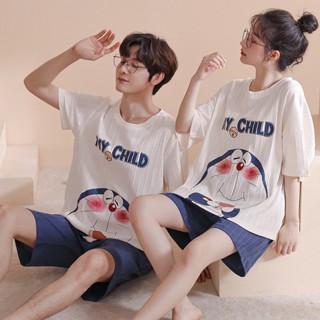 Bộ Mặc Nhà Couple Nam Nữ Áo Cộc Quần Cộc Chất Liệu Cotton Lạnh MODAL