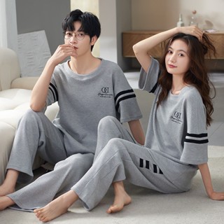 Bộ đôi Pajamas Cotton Áo Cộc Quần Dài Nam Nữ