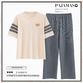 ( Đệm tháo rời, Modal gân tăm ) Bộ Mặc Nhà Đệm Ngực Áo Cộc Quần Dài Chất Liệu Cotton Modal Lạnh Thoáng Mát, Dễ Chịu