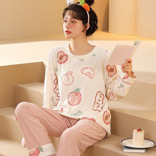 Bộ Mặc Nhà Cổ Tròn Dài Tay Chất Liệu Cotton Mềm Mịn Mẫu Mới