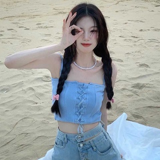 Jiashucheng Tea Break Đầm Denim Hai Dây Nhỏ Nhắn Thanh Lịch Kiểu Pháp Thời Trang Mùa Hè Dành Cho Bạn Nữ