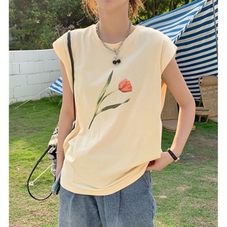 Jiashucheng Áo Thun Nữ Không Tay In Hình Hoa Tulip Phong Cách Hàn Quốc Mới