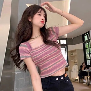 Jiashucheng Áo Thun polo Ngắn Tay Vải Lụa Lạnh Kẻ Sọc Đen Thời Trang Mùa Hè 2023 Cho Nữ