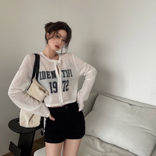 Jiashucheng Áo Khoác Cardigan Dệt Kim Mỏng Tay Dài Dáng Rộng In Chữ Thời Trang Cho Nữ
