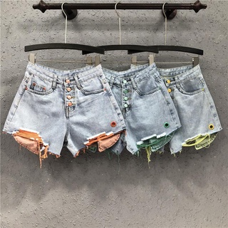 JSC Quần Short Denim Mỏng Lưng Cao Dáng Chữ a Ống Rộng Rách Cá Tính Thời Trang Mùa Hè Cho Nữ