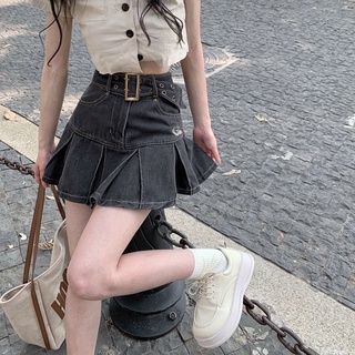 Jiashucheng Chân Váy Denim Lưng Cao Xếp Ly Cột Dây Phong Cách Mới Mùa Hè Cho Nữ