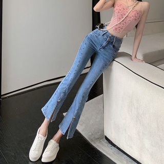 Jiashucheng Quần Jean Ống Loe Dài Tới Mắt Cá Chân Eo Cao Ôm Dáng Thiết Kế Xẻ Tà Phong Cách Mùa Hè Mới Cho Nữ