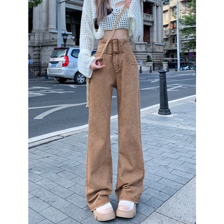 Jiashucheng Quần Jean Nữ Lưng Cao Nhuộm Màu Bùn Vàng
