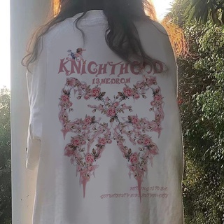Jiashucheng Áo Thun Ngắn Tay Dáng Rộng In Họa Tiết Hoa Hồng Thắt Nơ Kiểu Retro Mỹ Dễ Phối Đồ Hợp Thời Trang Mùa Hè