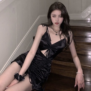 Jiashucheng Đầm Đuôi Cá Ôm Dáng Phối Dây Rút Rỗng Lấp Lánh Thiết Kế Gợi Cảm Mùa Hè Nóng Bỏng Cho Nữ