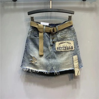 Jiashucheng Chân Váy Denim Mini Lưng Cao Khoét Lỗ Phong Cách Hàn Quốc Thời Trang Mùa Hè Mới Cho Nữ