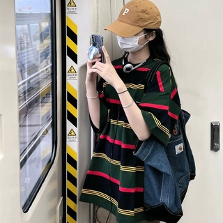 Jiashucheng Áo Thun Nữ Ngắn Tay Cổ Tròn Sọc Ngang Thời Trang Mới