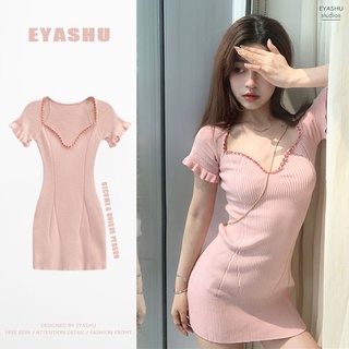 Jiashucheng Đầm Dệt Kim Mỏng Tay Ngắn Dáng Ôm Thời Trang Mùa Hè Pháp Ngọt Ngào Quyến Rũ Dành Cho Nữ