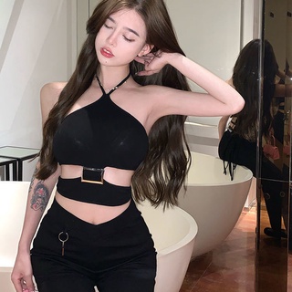 Jiashucheng Áo Crop Top Hai Dây Dáng Ngắn Phối Khóa Kim Loại Lưng Cao Gợi Cảm Cho Nữ