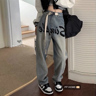 Jiashucheng Quần Jean Dài Lưng Cao Ống Rộng In Họa Tiết Thời Trang Hàn Quốc Cá Tính Cho Nữ