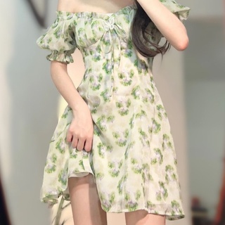 Jiashucheng Đầm Hoa Tay Phồng Ôm Eo Thời Trang Mùa Hè 2022 Phong Cách Ngọt Ngào Cho Nữ