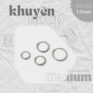[1 CHIẾC] Khuyên Tai HOOP Dày 1.2MM Tròn Xỏ Nam Nữ Hình Unisex Titanium Julies Box 66 Không Ngứa Không Gỉ