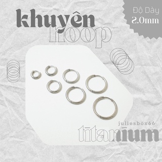 [1 CHIẾC]Khuyên Tai Hoop Tròn Nhiều Size Dày 2MM Xỏ Nam Nữ Hình Unisex Titanium Không Ngứa Không Gỉ Julies Box 66