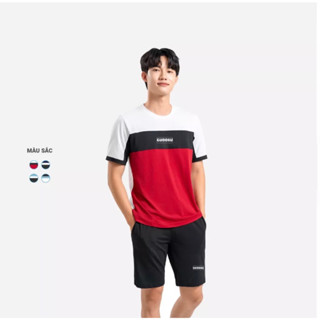 Bộ thể thao nam, bộ quần áo nam cộc tay phối màu chạy viền ngực chất CVC Cá Sấu dày dặn mặc nhà chơi thể thao