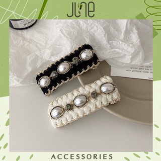 [FREESHIP] Kẹp tóc nhung đính ngọc trai nhân tạo, dễ phối đồ, 2 màu đen trắng, phong cách hàn quốc, June