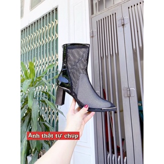 Bốt lưới mũi da vuông gót 7cm 2 kiểu ngắn dài Fullbox 834J