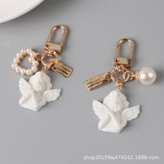 Móc chìa khóa thiết kế thiên thần và ngọc trai nhân tạo dễ thương