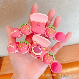 Set 4 Dây Buộc Tóc Mềm Mại Không Làm Tổn Thương Tóc Trong Mờ Hình Gấu Dâu Tây