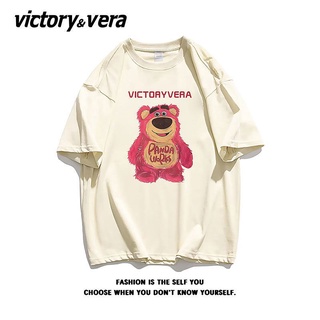 Áo Thun Cotton Nguyên Chất Tay Ngắn In Hình Gấu Và Dâu Tây Phong Cách Hàn Quốc Kiểu Mới 2023