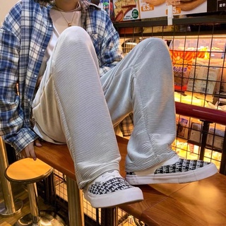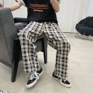 > Quần dài ống rộng hoạ tiết sọc caro phong cách retro cho nam nữ