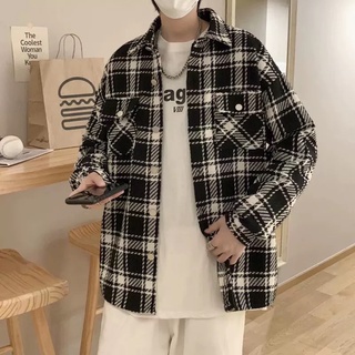 > Áo khoác kaki kiểu caro tay dài phong cách Hàn quốc dành cho nam 2022 mùa thu đông