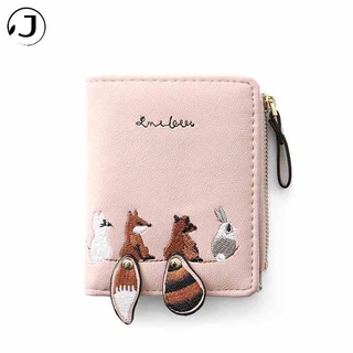 KAITIFEI Ví da nữ mini ngắn nhỏ cao cấp thêu động vật dễ thương có dây kéo