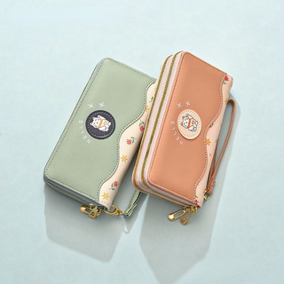 KAITIFEI Ví cầm tay Bóp Đựng Tiền dáng dài đựng tiền xu/thẻ hai dây khóa kéo phong cách Hàn Quốc dành cho bạn nữ