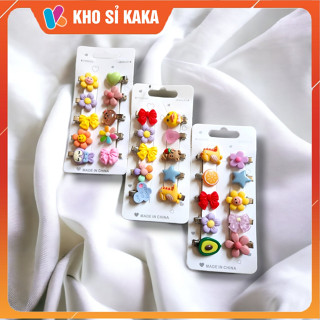 Vĩ 10 kẹp mái mỏ vịt đính icon hoạt hình mini cho bé - KAKA K517