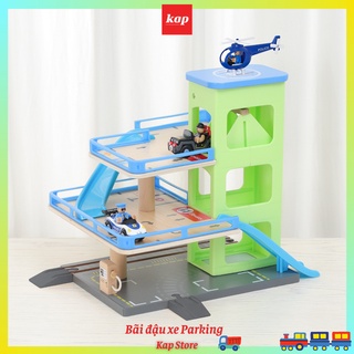 Bộ bãi đậu xe, parking garage, nhà phụ kiện liên kết đường ray xe lửa gỗ