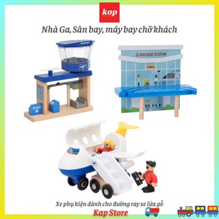 Trạm ga Tàu điện Railway Station, phụ kiện đường ray xe lửa gỗ