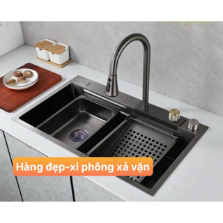 Chậu rửa bát 1 hố inox 304 cỡ lớn, bồn rửa chén bát 1 hộc, vòi rút thác nước xả ngang đa năng, giá rẻ