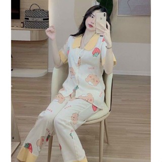 Bộ Mặc Nhà Pyjama Phối Màu Cổ Sen Quần Đùi Có Big Size